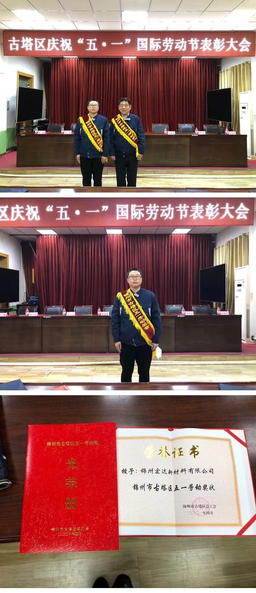 2021年4月29日上午8點,錦州市古塔區(qū)慶祝“五一”表彰大會暨隆重召開。大會對古塔區(qū)五一勞動獎狀、五一勞動獎?wù)?、工人先鋒號獲獎代表進行了頒獎,我公司質(zhì)量部負責(zé)人孫建峰同志被錦州市古塔區(qū)授予2021年“錦州市古塔區(qū)五一勞動獎?wù)?rdquo;,授予錦州宏達新材料有限公司2021年“錦州市古塔區(qū)五一勞動獎狀”。