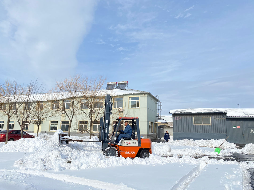 2021年11月7日第一場(chǎng)大雪如期而至,我們錦州迎來(lái)了今年冬天的第一場(chǎng)大雪,雪花漫天紛飛,猶如舞動(dòng)的精靈,使整個(gè)大地銀裝素裹。大雪過(guò)后,公司門(mén)口、內(nèi)外主干道上都積了厚厚的一層雪,在為廠區(qū)披上盛裝的同時(shí),也為公司員工和來(lái)訪客人的出入帶來(lái)諸多不便。